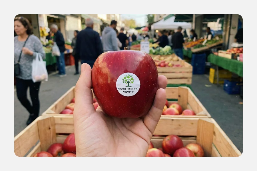 | בטיחות מזון: שימוש בדבקים (P77, P22) ובדיו המאושרים למגע עם מזון (תקני FDA ו-EU), ללא מעבר חומרים למזון. | אינן למאכל: המדבקות אינן מיועדות לאכילה ויש להסירן לפני אכילת הפרי או הירק. |