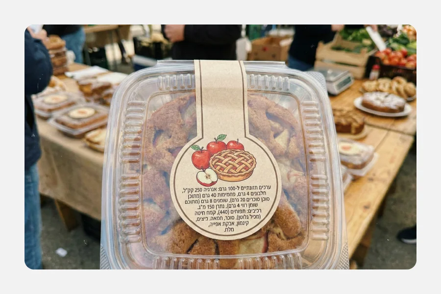 עמידה בתקנים. משרד הבריאות מחייב סימון מדויק של מוצרי מזון, כולל פירות וירקות ארוזים. אם אתה חקלאי או ייבואן של תוצרת חקלאית אתה חייב לכלול במדבקה מידע תזונתי, תאריך אריזה ומקור המוצר. באם איך לך גרפיקה מוכנה, מחלקת הגרפיקה שלנו בעלת ניסיון רב בעיצוב מדבקות לחקלאות ולמזון ועומדת תמיד לשירות הלקוחות שלנו.